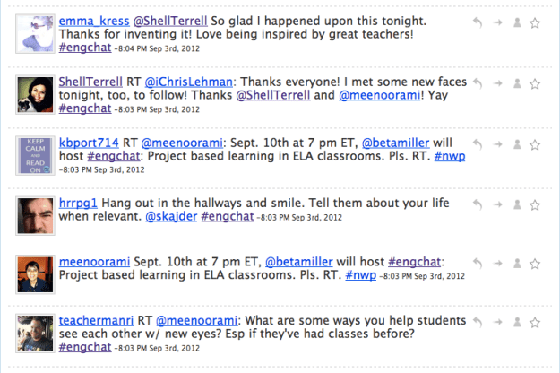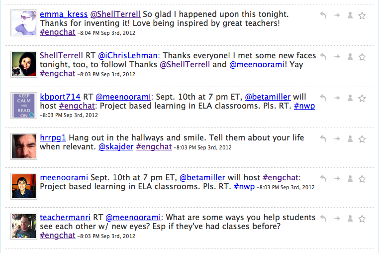 One of the things I both love and hate about Engchat is how quickly it flies by! At the end of a session my brain is stuffed with ideas. Here are my thoughts on today’s chat, sorted out: